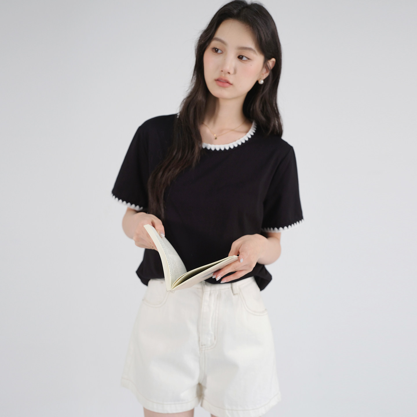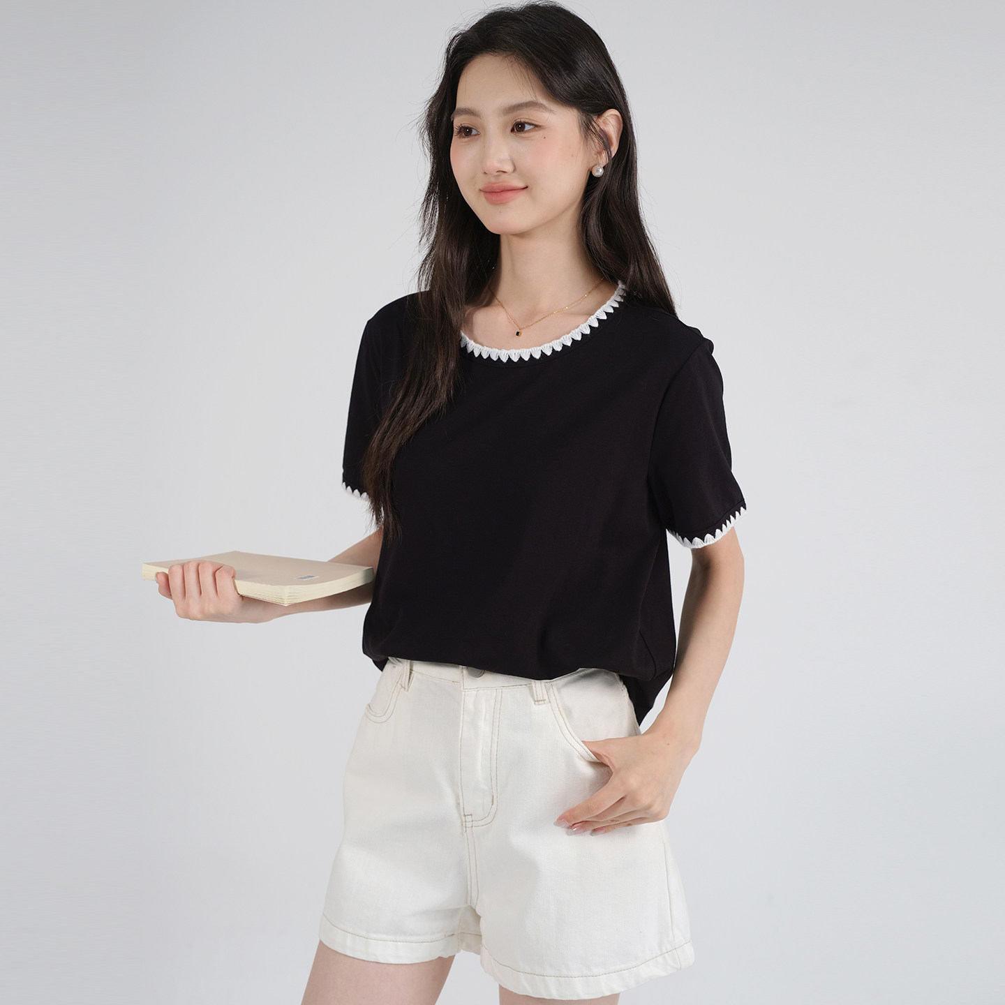 WTX09002 茉莉雅集 经典基础百搭全棉圆领长袖纯色T恤早春女