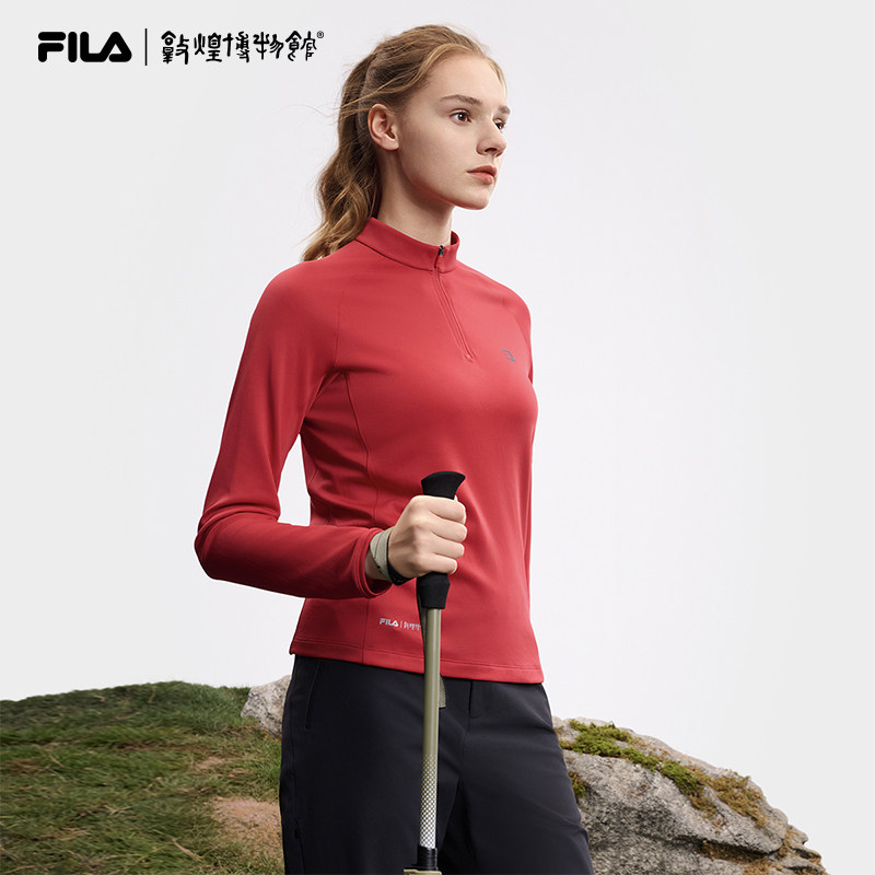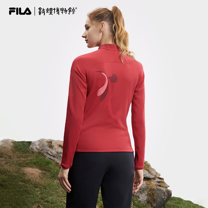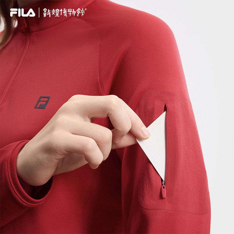 天猫FILA敦煌博物馆联名斐乐长袖T恤女2025春新款运动防晒半拉链上衣