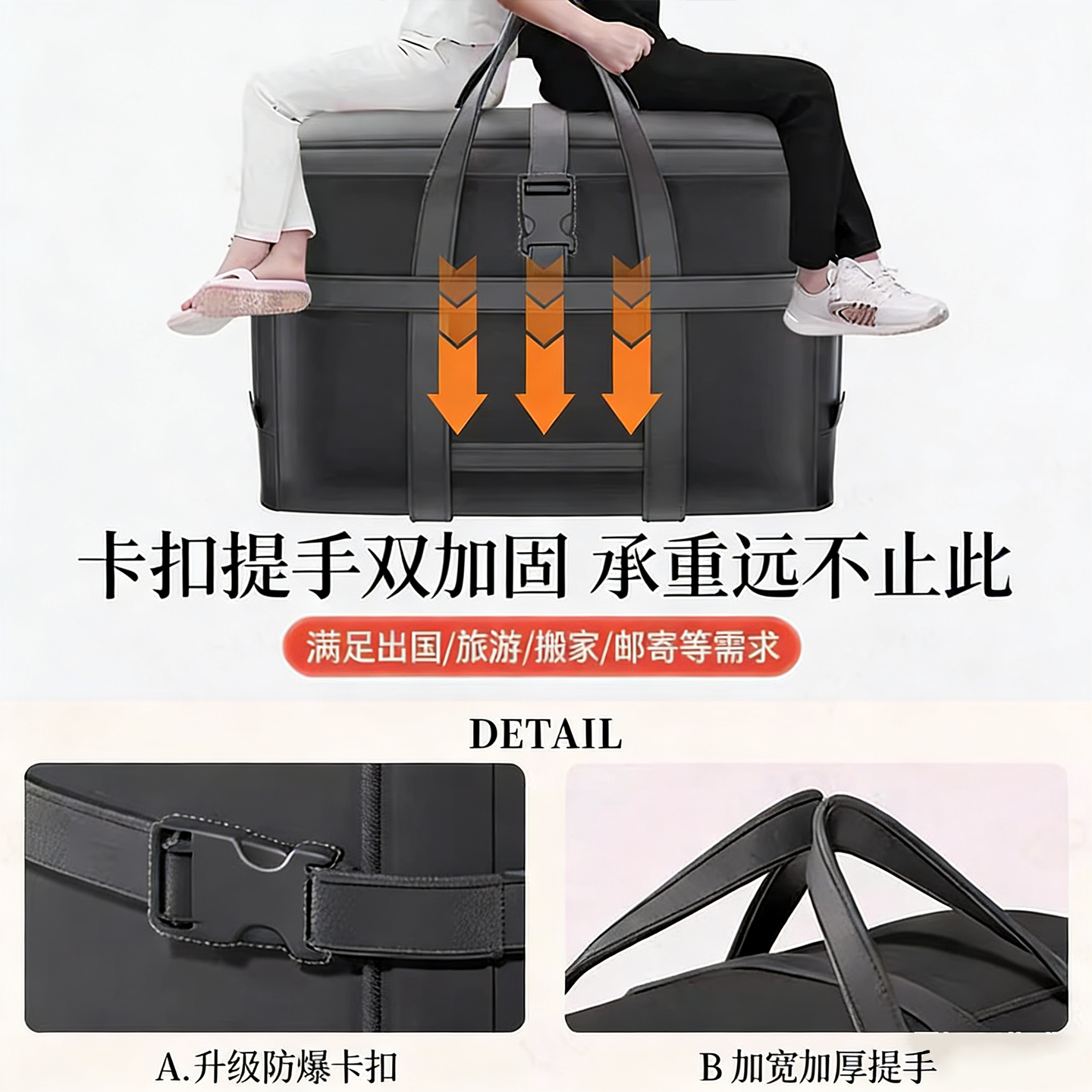这款特大号牛津布防水行李收纳袋,采用加厚高密度牛津布材质,结实耐磨、抗撕裂,有效防尘防水,保护衣物和被褥不受潮污。超大容量设计,可轻松容纳棉被、羽绒服、毛毯等大件物品,是搬家、换季收纳的理想选择。内置加固提手,承重力强,提拿省力;拉链顺滑密封性好,防止物品散落。折叠后体积小,便于存放,不占空间。无论是家庭收纳、长途搬家,还是旅行携带,都能满足大容量、高防护的需求,实用又省心,让整理与搬运变得轻松高效。
