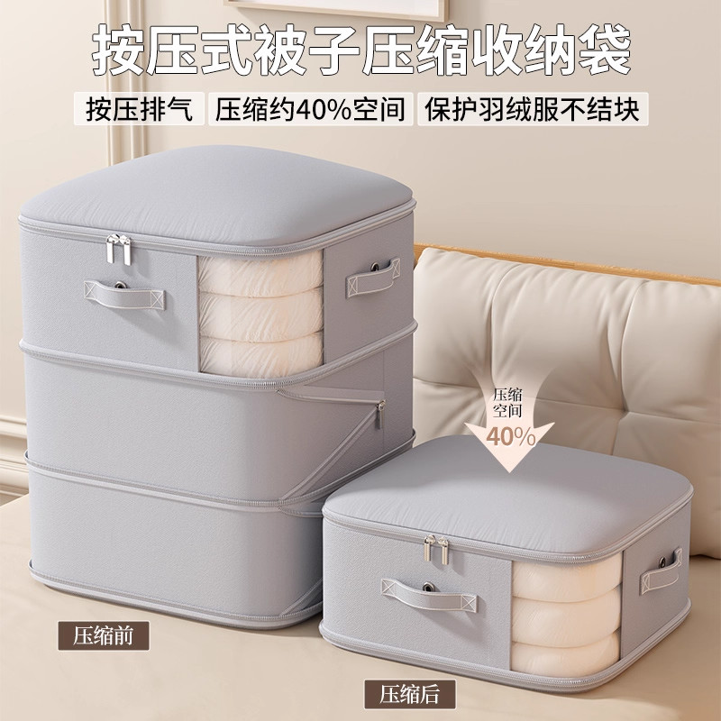 这款被子收纳袋羽绒服压缩袋,专为大容量衣物整理与搬家收纳设计,采用加厚耐磨材质,防潮、防尘、防虫,有效保护衣物清洁。配备高气密性拉链和强力抽气泵接口,可快速压缩体积,节省高达75%空间,轻松收纳棉被、羽绒服、毛毯等大件物品。透明视窗设计便于识别内容物,手提带加固,搬运更便捷。适用于换季收纳、宿舍整理、搬家打包等多种场景,是居家必备的实用整理神器。结实耐用,重复使用,环保又省心,让收纳变得简单高效。