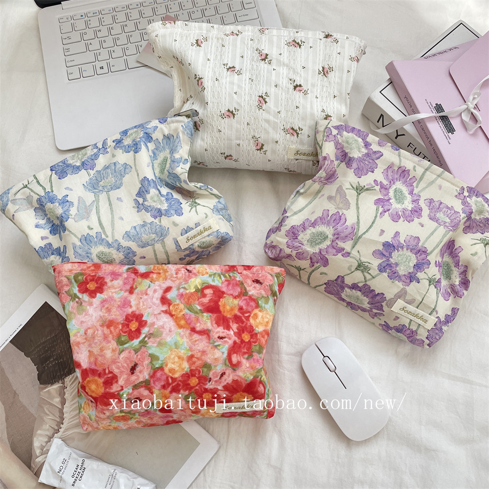 淘宝小白兔几 田园花朵化妆包文艺手拿洗漱包便携式收纳包水乳化妆袋