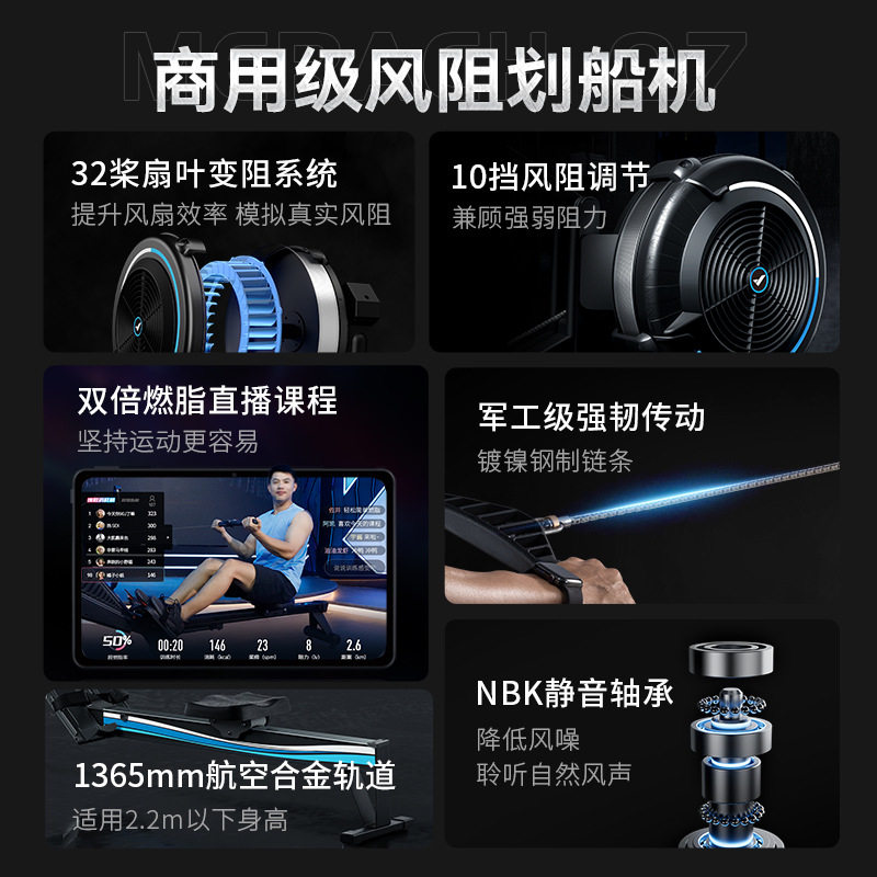 淘宝麦瑞克MERACH超燃脂智能商用风阻划船机家用有氧无氧运动健身器材