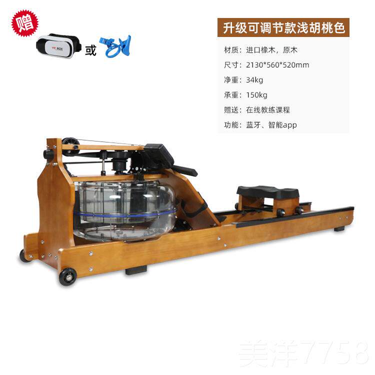 可定制水阻划船机 有氧运动家用健身器材 橡胶木水阻划船器原木色