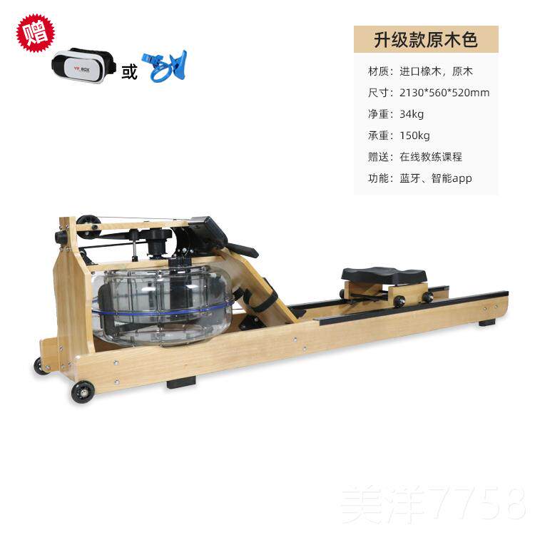 淘实木水阻可折叠划船机健身房家用有氧运动健身器材模拟水阻划船机