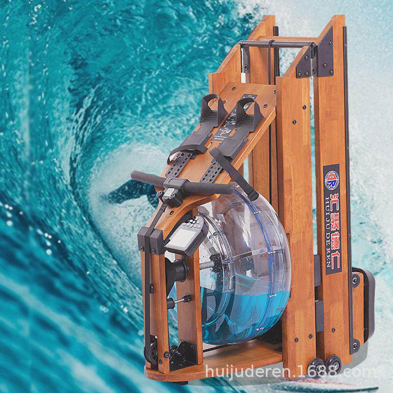 淘宝实木水阻可折叠划船机健身房家用有氧运动健身器材模拟水阻划船机
