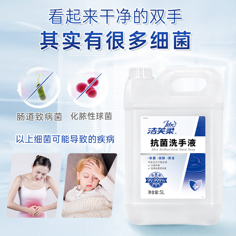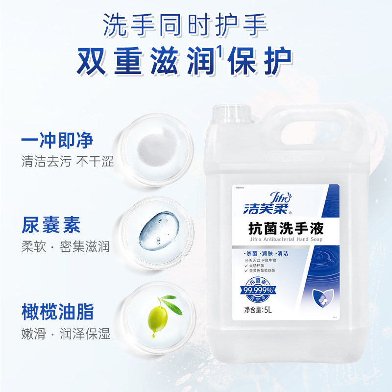 天猫【院用级】洁芙柔抗菌杀菌抑菌去污滋润洗手液5L补充装温和不伤手