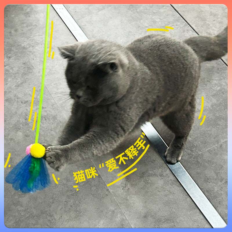 CFA赛级 木柄弹簧逗猫棒羽毛铃铛替换头可拆卸互动宠物猫咪玩具