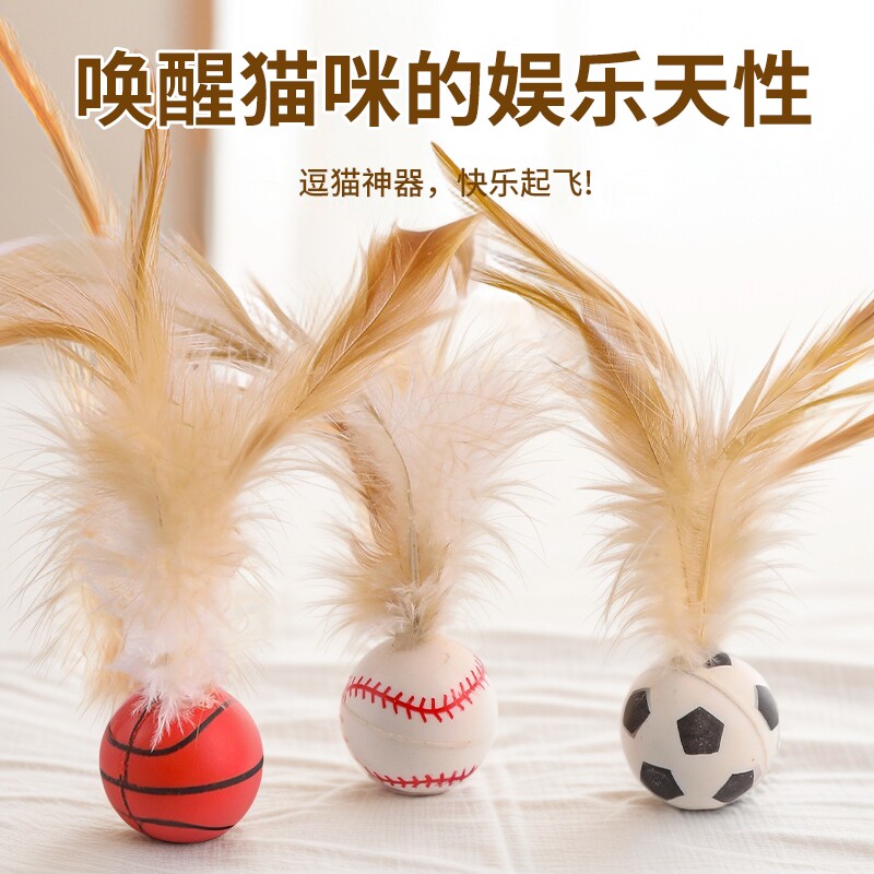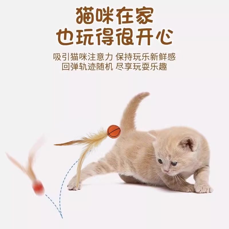 猫咪弹力球鸡毛带羽毛跳球橡胶球互动逗小猫棒自嗨解闷宠物玩具球
