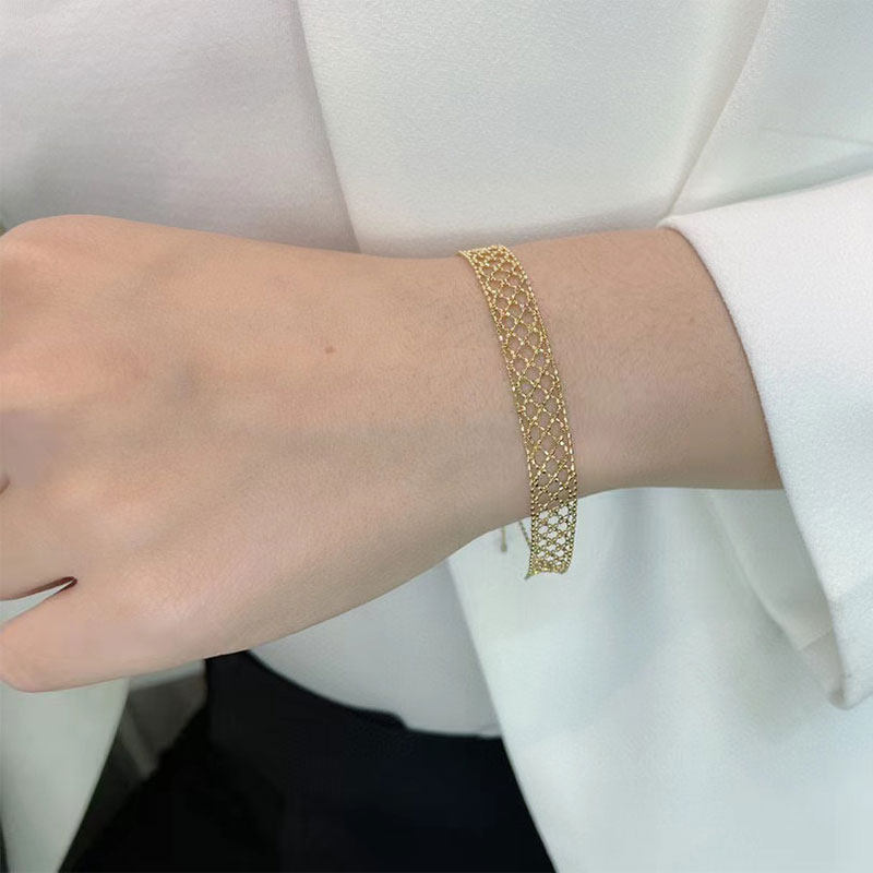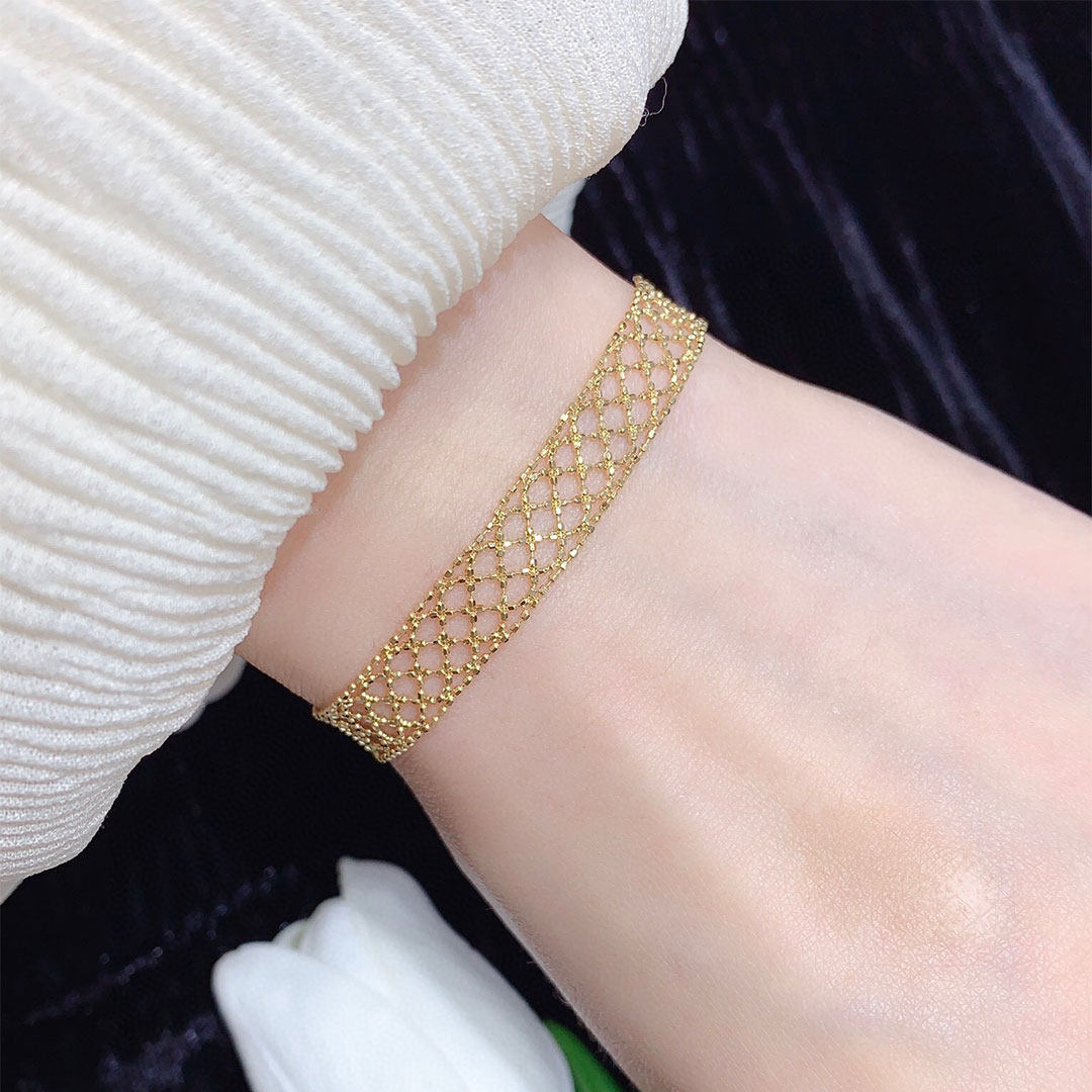 淘宝美梓珠宝 18K金织梦网蕾丝手链编织宽版手饰闪耀华丽轻奢梦幻温柔