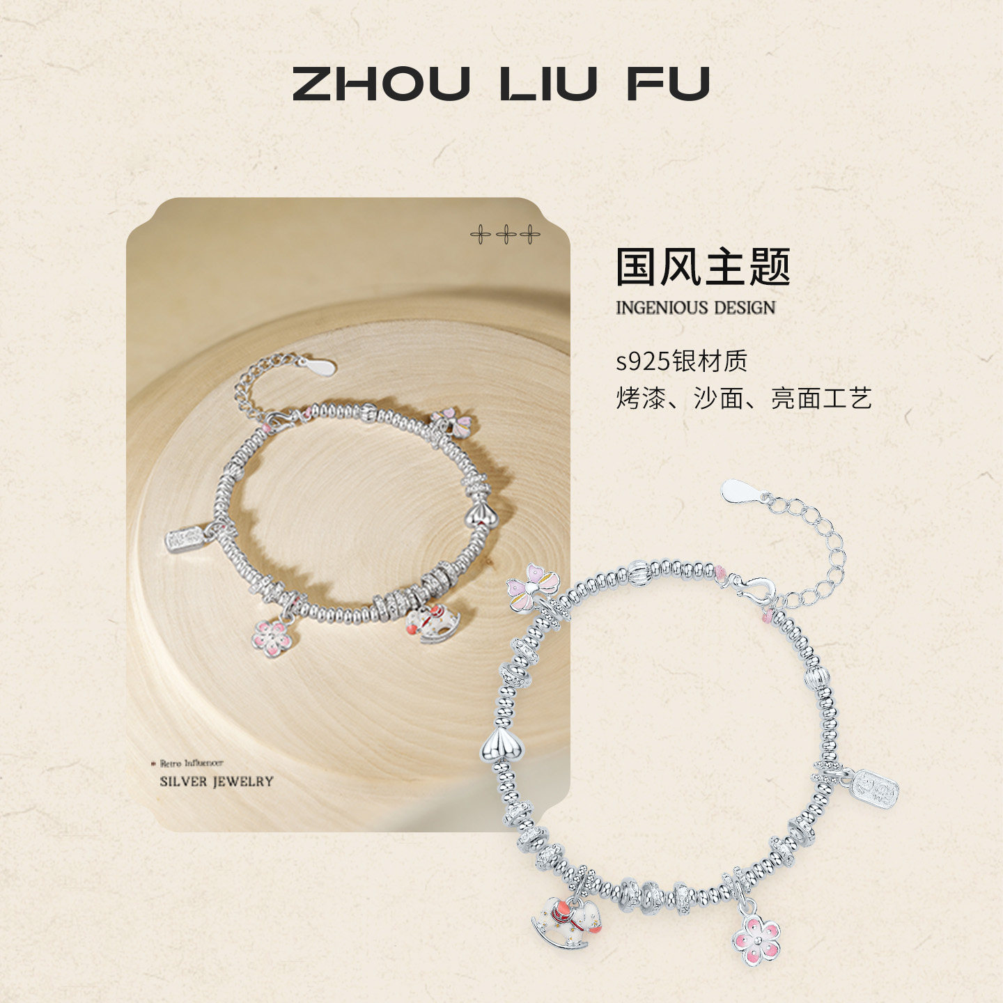 天猫周六福碎银子萌马手链女萌马星尘手串手饰S925银情人节礼物送女友