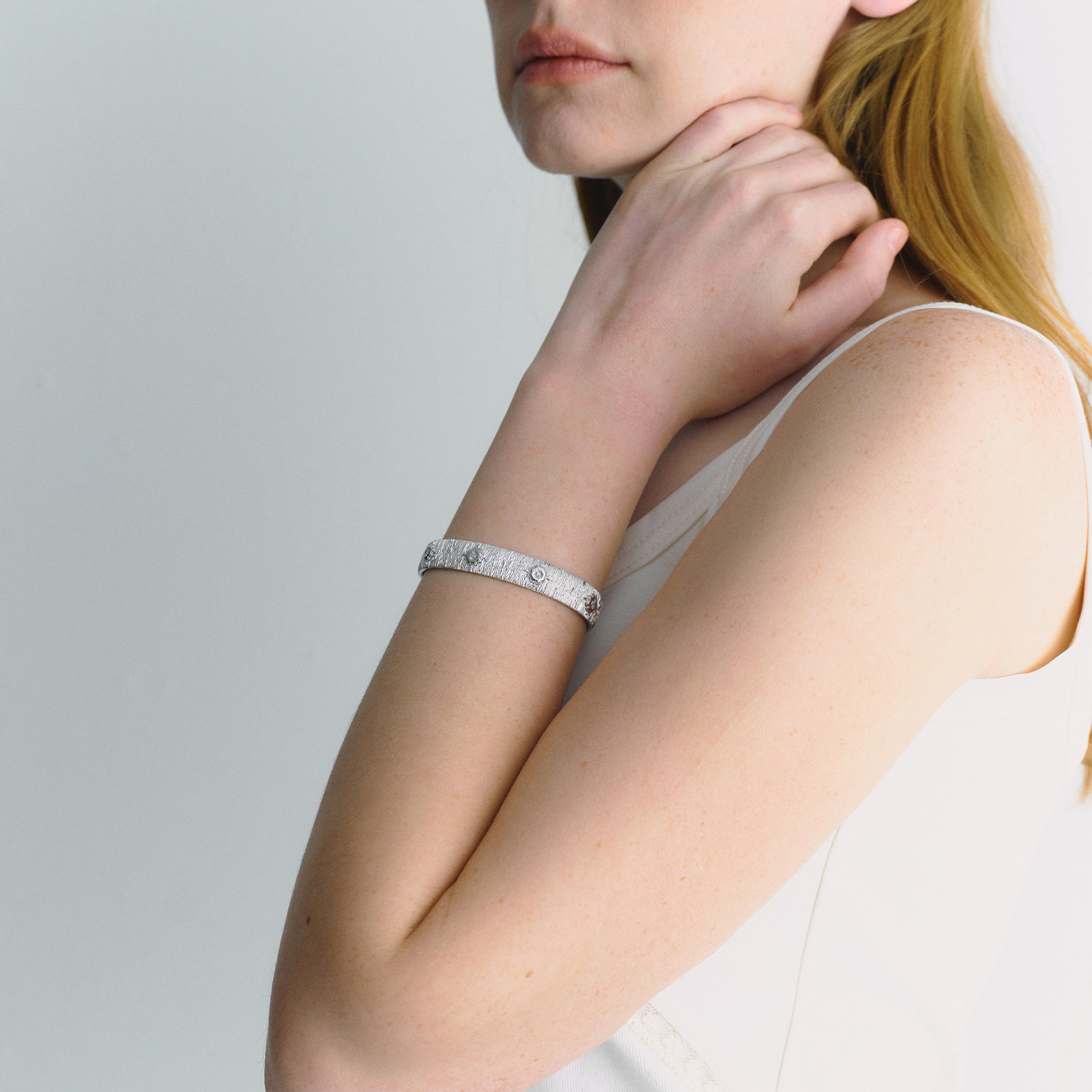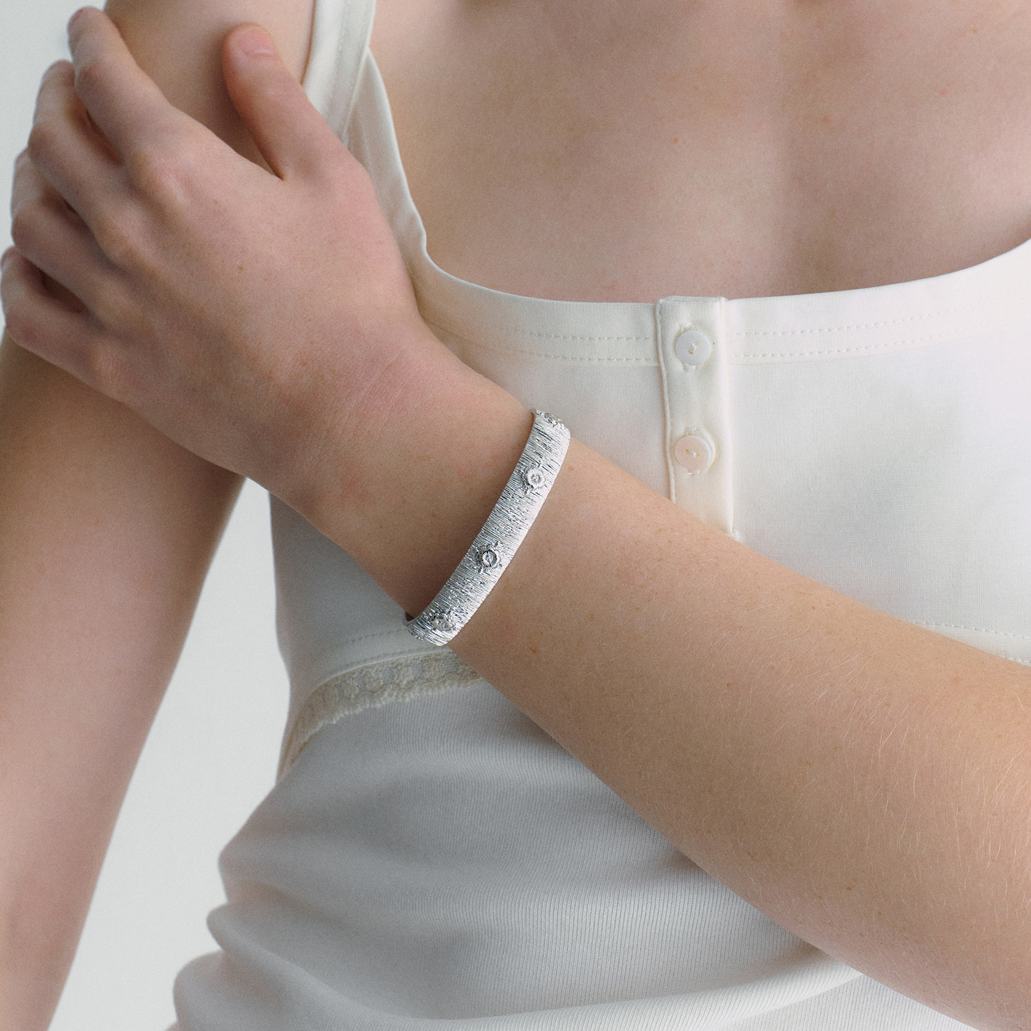 CINNLER【梦境浮菊】轻奢手镯,以东方美学为灵感,融合现代极简设计,诠释优雅气质。采用高定拉丝工艺,细腻纹理如月光拂过水面,质感温润且富有层次。灵感源自梦中浮动的菊花,象征静谧与坚韧,赋予佩戴者独特精神意境。整体造型简约流畅,ins风设计百搭日常与通勤造型,轻盈贴合手腕,彰显低调奢华。精选优质合金材质,抗氧化耐磨损,长久佩戴依旧光泽如初。无论是自用还是赠礼,【梦境浮菊】皆是一份蕴含诗意与品味的精致之选,让腕间绽放从容之美。
