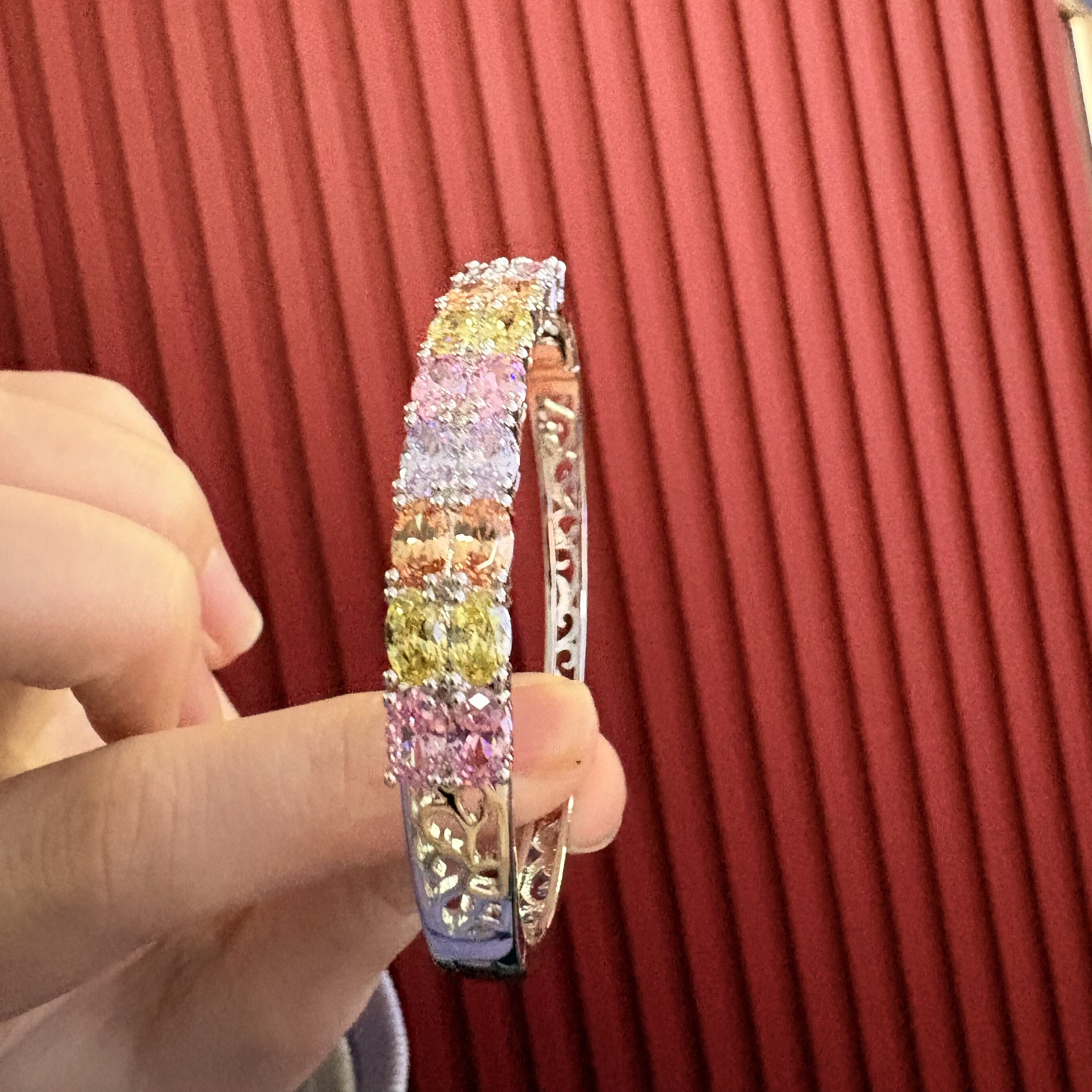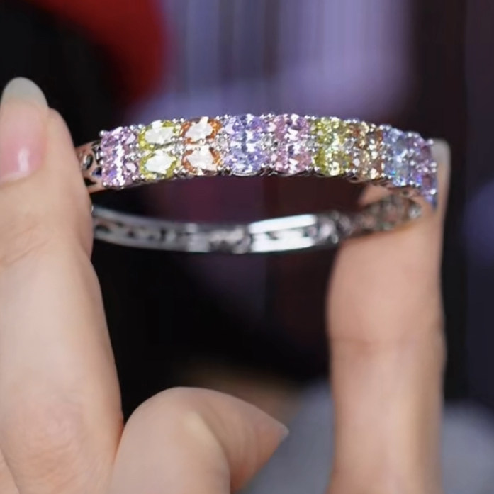 旭平时尚轻奢复古中古风气质微镶彩色人造石易搭手镯,融合东方雅致与现代美学,以精湛工艺打造。精选高品质合金材质,表面经细腻抛光处理,质感温润。手镯巧妙点缀微镶彩色人造石,色彩斑斓却不失内敛,闪耀低调光芒。复古中古风设计线条流畅,兼具文艺气息与时尚感,轻松搭配日常通勤或休闲造型。轻盈佩戴舒适,不挑手型,适合多种场合。无论是单独佩戴还是叠搭,皆能凸显独特气质,是追求个性与品味的现代女性的理想之选,展现优雅而不张扬的轻奢魅力。