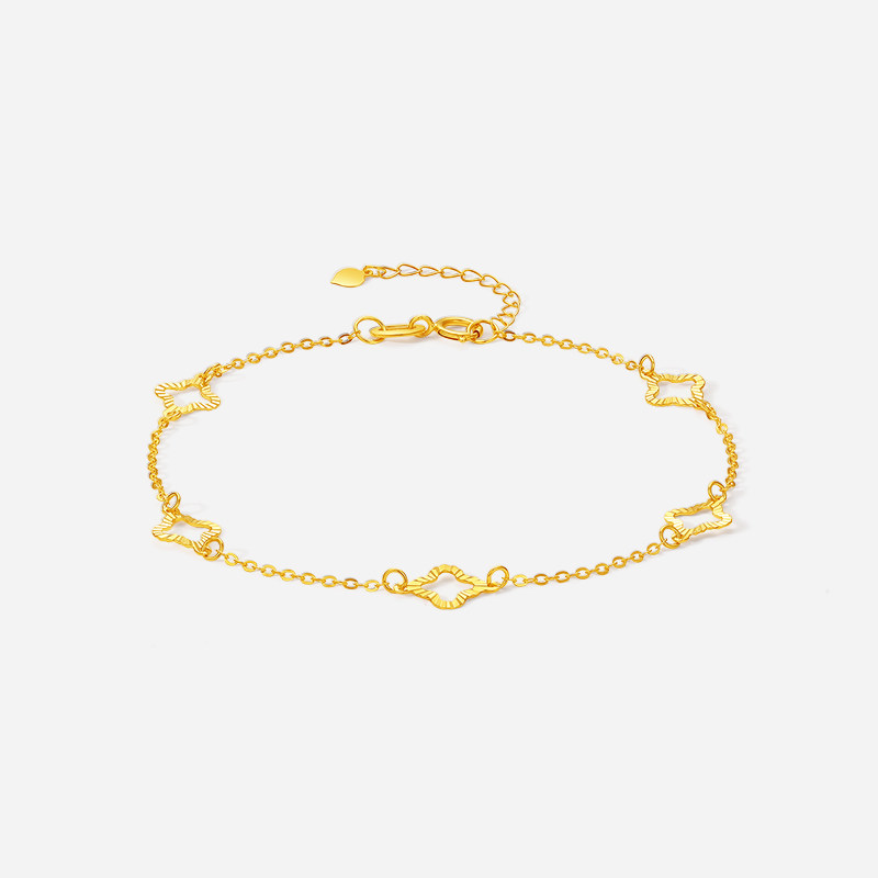 周六福黄18K金手链,以经典四叶草为设计灵感,寓意幸运与美好。采用Au750黄金材质,色泽温润亮丽,搭配多彩K金工艺,层次丰富,时尚百搭。精致小巧的四叶草吊坠镶嵌其间,细节考究,闪耀动人,尽显女性优雅气质。链身轻盈贴合手腕,佩戴舒适,适合日常搭配或重要场合。无论是情人节、生日还是纪念日,这款手链都是送给女友的贴心之选,承载浓浓爱意与祝福,见证每一个幸福瞬间。周六福匠心工艺,品质保证,让爱在腕间绽放。