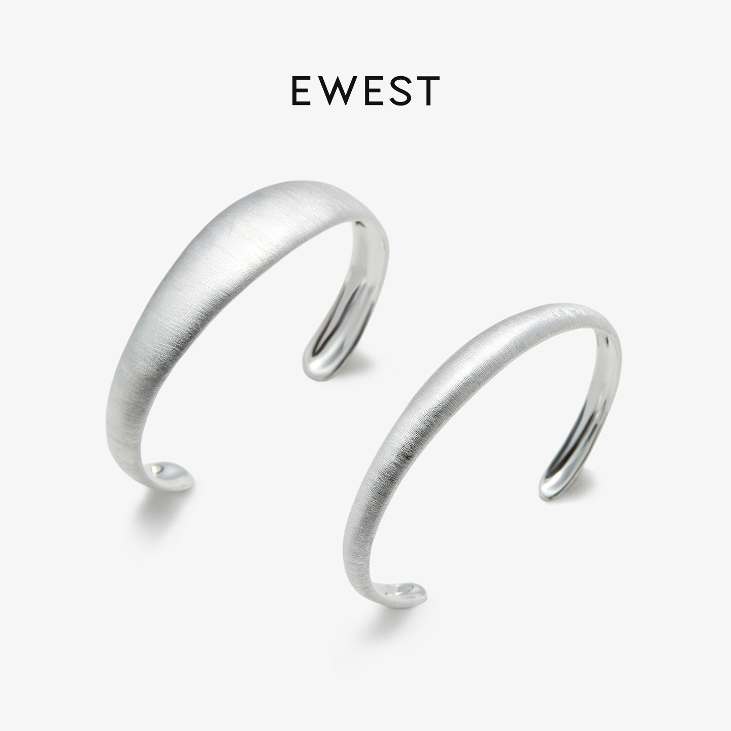 天猫EWEST 素银拉丝手镯女小众原创设计感新款镯子高级百搭气质手饰