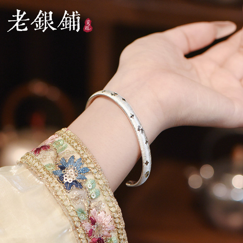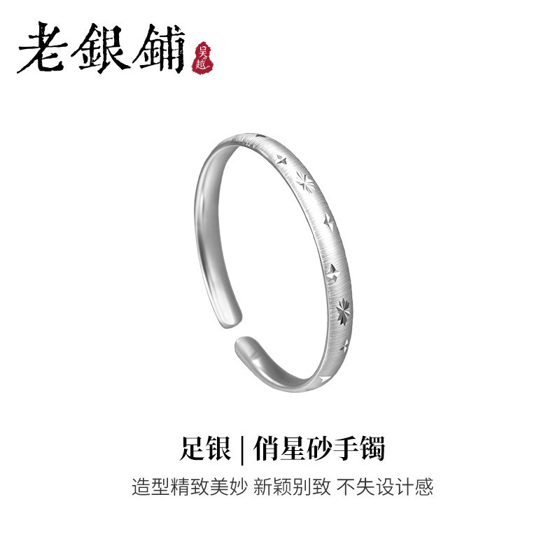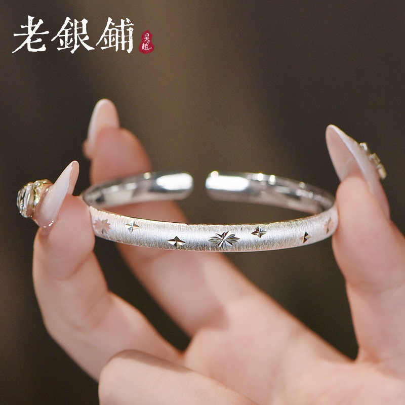 天猫吴越老银铺银手镯2025新款开口纯银镯子足银俏星砂手镯女高级手饰