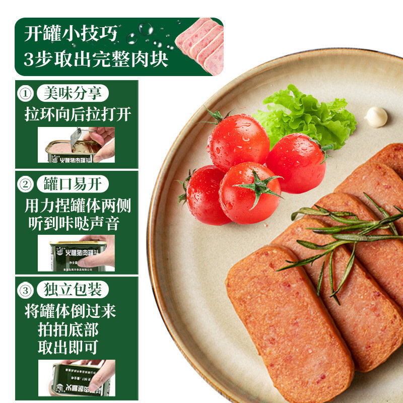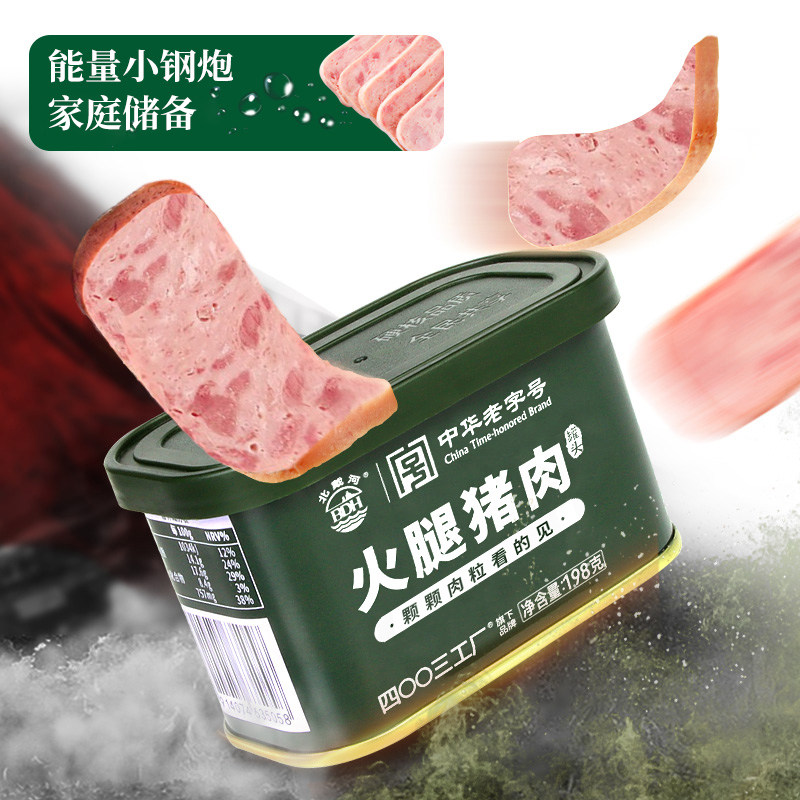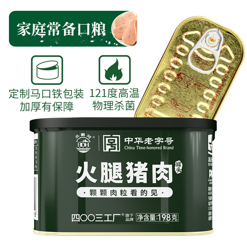 天猫北戴河火腿猪肉罐头198g午餐肉三明治速食火锅食材方便即食食品