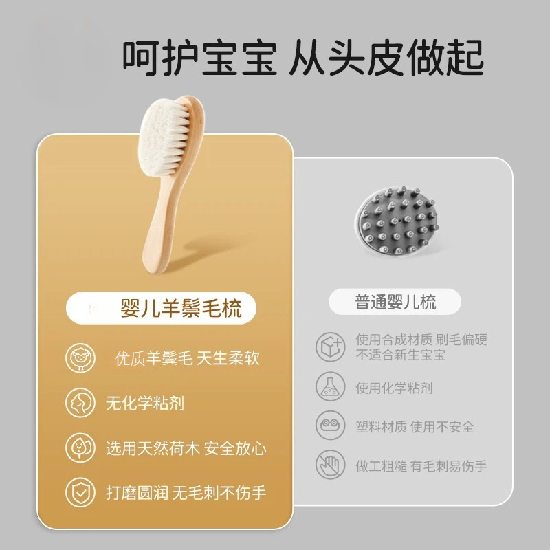 淘初念婴儿梳子羊毛纯手工宝宝去头垢刷按摩新生儿童洗澡洗头软毛刷