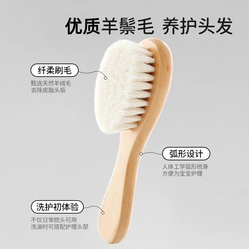 初念婴儿梳子羊毛纯手工宝宝去头垢刷按摩新生儿童洗澡洗头软毛刷