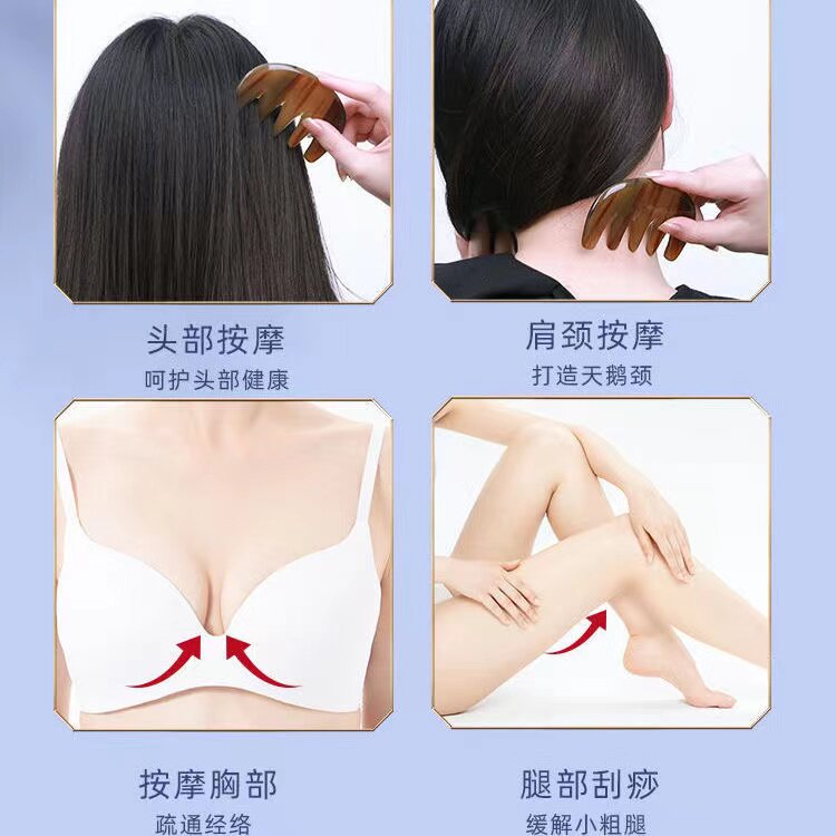 本品选用天然白水牛角精制而成,质地厚实,温润细腻,具有良好的导热性和亲肤性。宽齿设计贴合头皮,不拉扯头发,适用于日常梳理与头部按摩。梳背加厚处理,可作为刮痧板使用,配合精油或润肤乳,有效疏通头部五经(督脉、膀胱经、胆经等),促进血液循环,缓解头痛、失眠、疲劳等症状。长期使用有助于改善头皮健康,增强免疫力。本品经传统工艺打磨,边缘光滑,手感舒适,无化学添加,安全环保。既是实用保健工具,也是馈赠亲友的健康好礼,适合全家人日常养生使用。