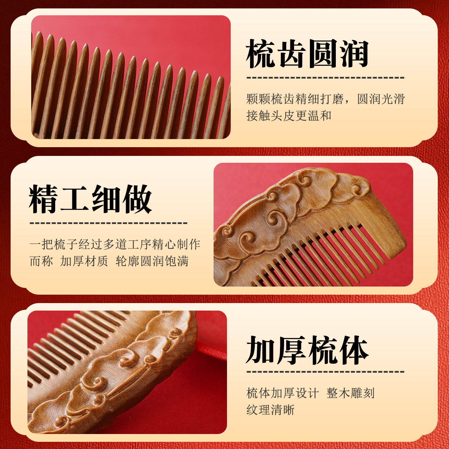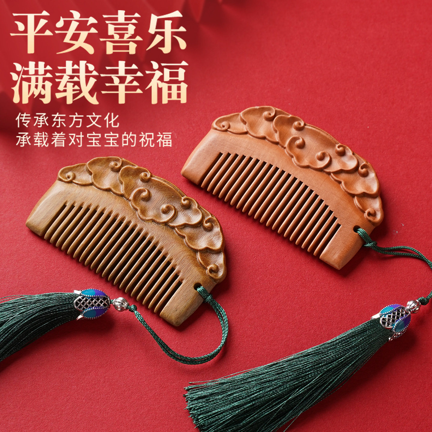 淘宝正品桃木梳子宝宝周岁礼抓周梳雕刻祥云儿童便携檀木梳百日宴送礼