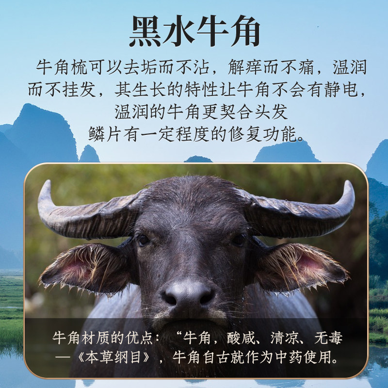 淘宝【叶梳匠】天然防静电黑水牛角梳女士长发专用头发造型梳头梳子