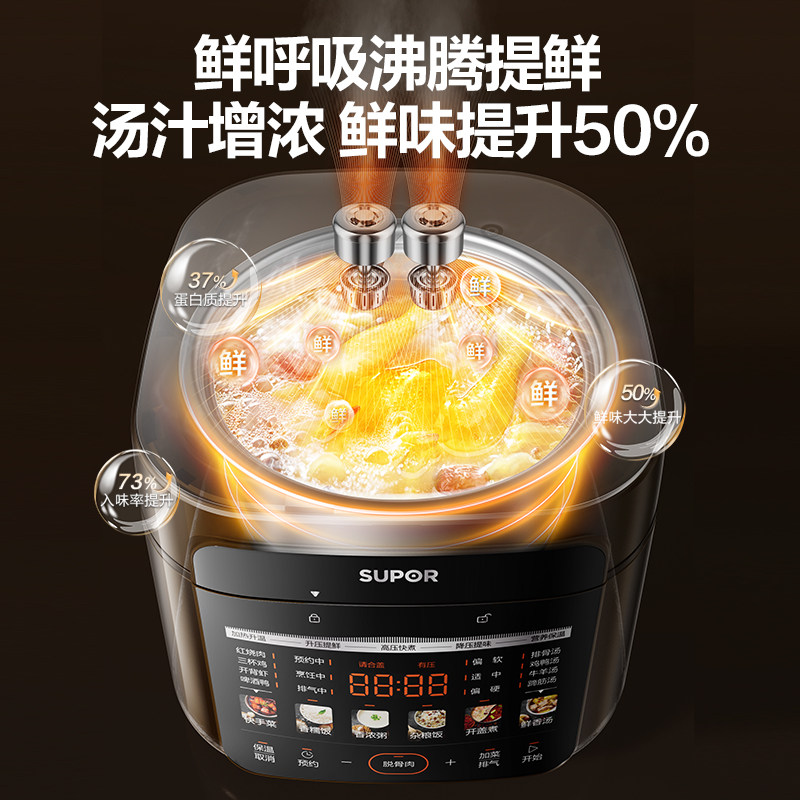 天猫苏泊尔快排鲜呼吸电压力锅家用5L大容量多功能智能预约电压锅