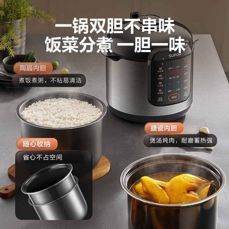 苏泊尔电压力锅0涂层双胆新款智能多功能高压电饭锅5L大容量饭煲