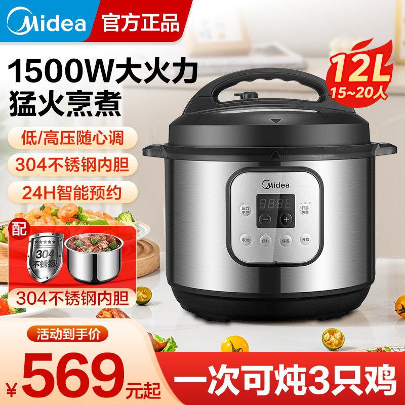天猫美的电压力锅12升商用大容量超大不锈钢高压饭锅电高压锅官方正品