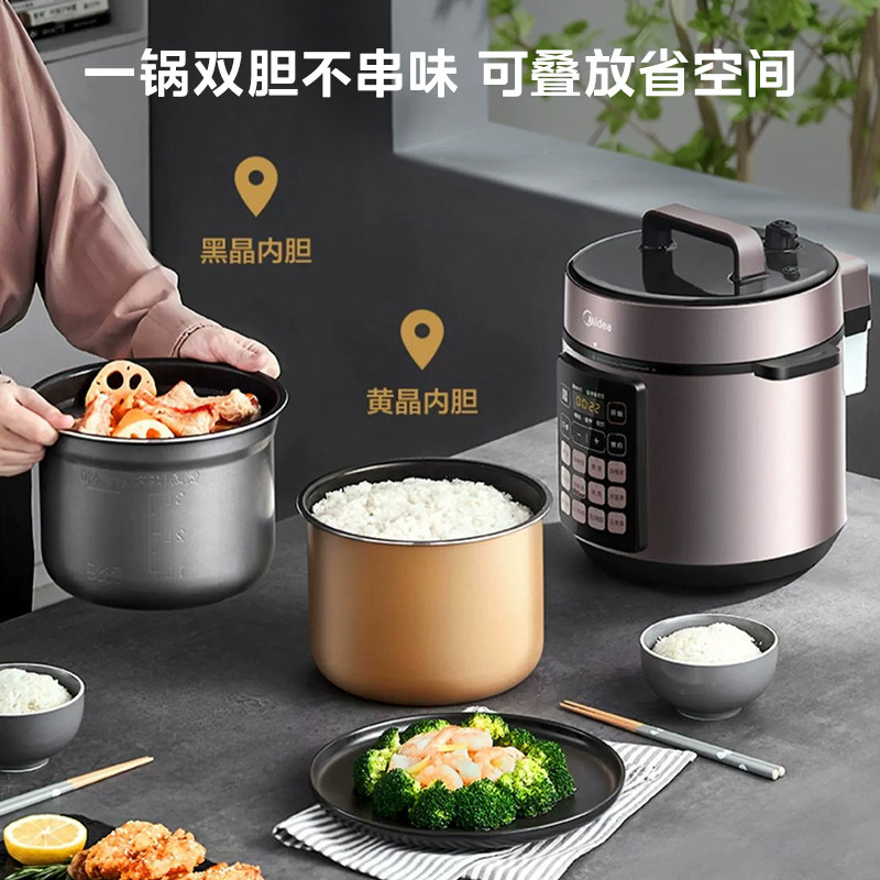 美的新款电压力锅家用0涂层双胆高压电饭煲多功能正品官方旗舰店
