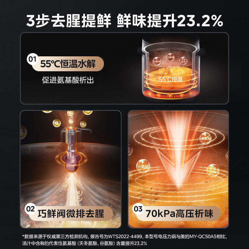 美的电压力锅家用双胆高压锅是一款高效、实用的厨房电器。其深汤多功能设计,能够满足家庭日常烹饪需求。智能饭煲功能,可全自动快煮各种美食,让您的烹饪过程更加轻松便捷。