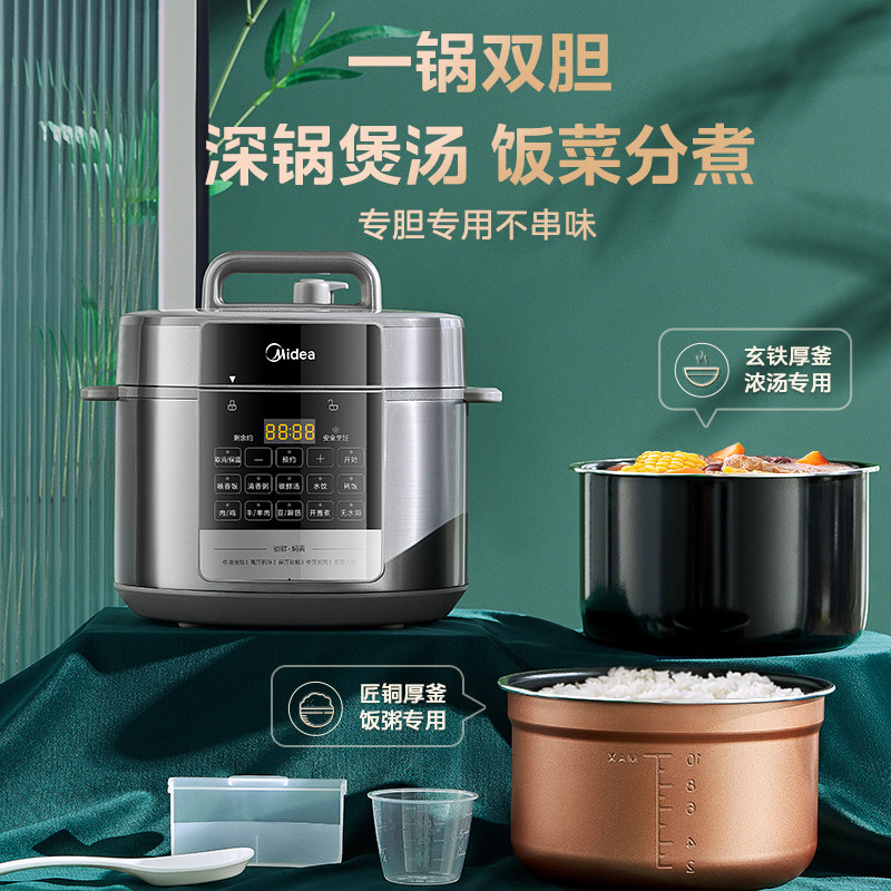 美的电压力锅家用双胆高压锅5升内胆多功能饭煲全自动智能6人正品