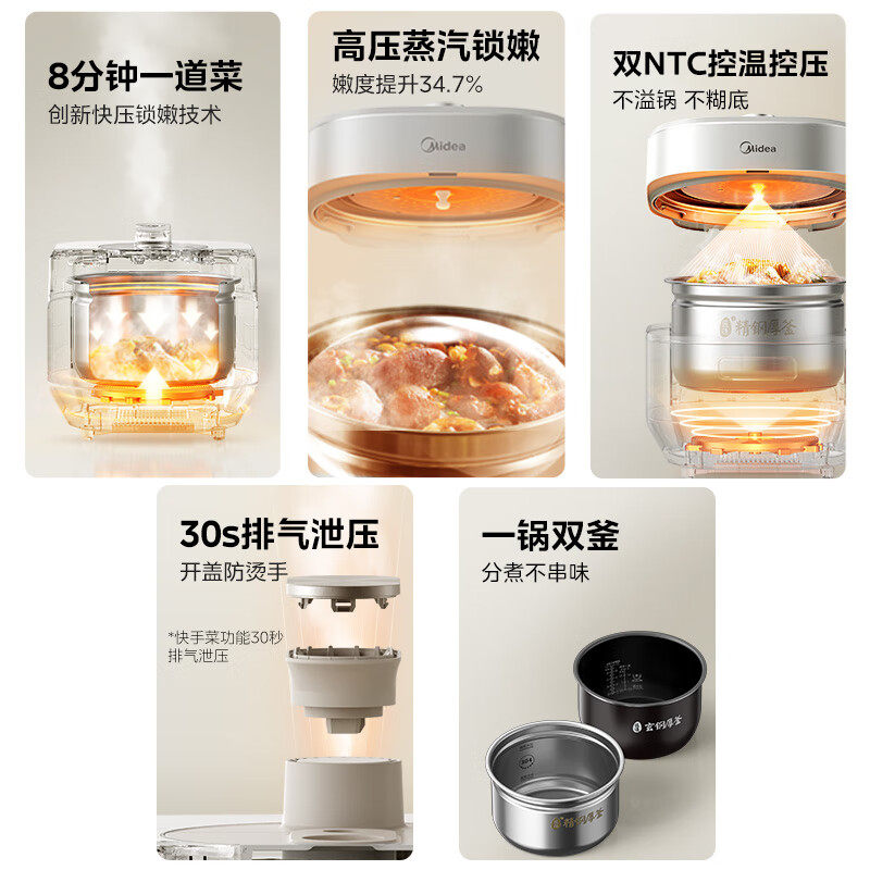 美的电压力锅家用双胆高压锅5升电饭煲6L容量智能高压锅官方正品