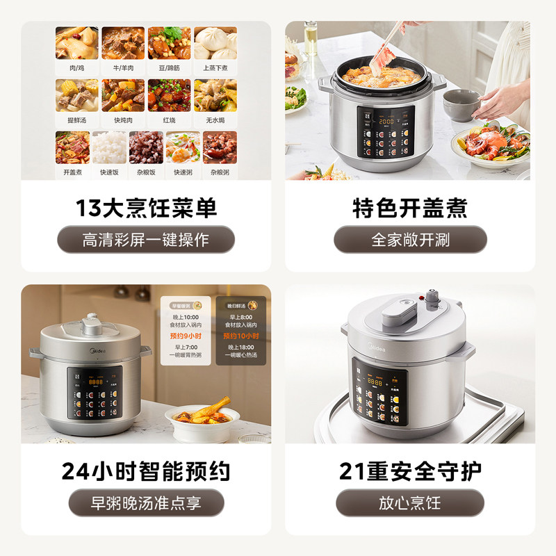天美的电压力锅家用智能6L大容量双胆电高压锅提鲜多功能全自动饭煲