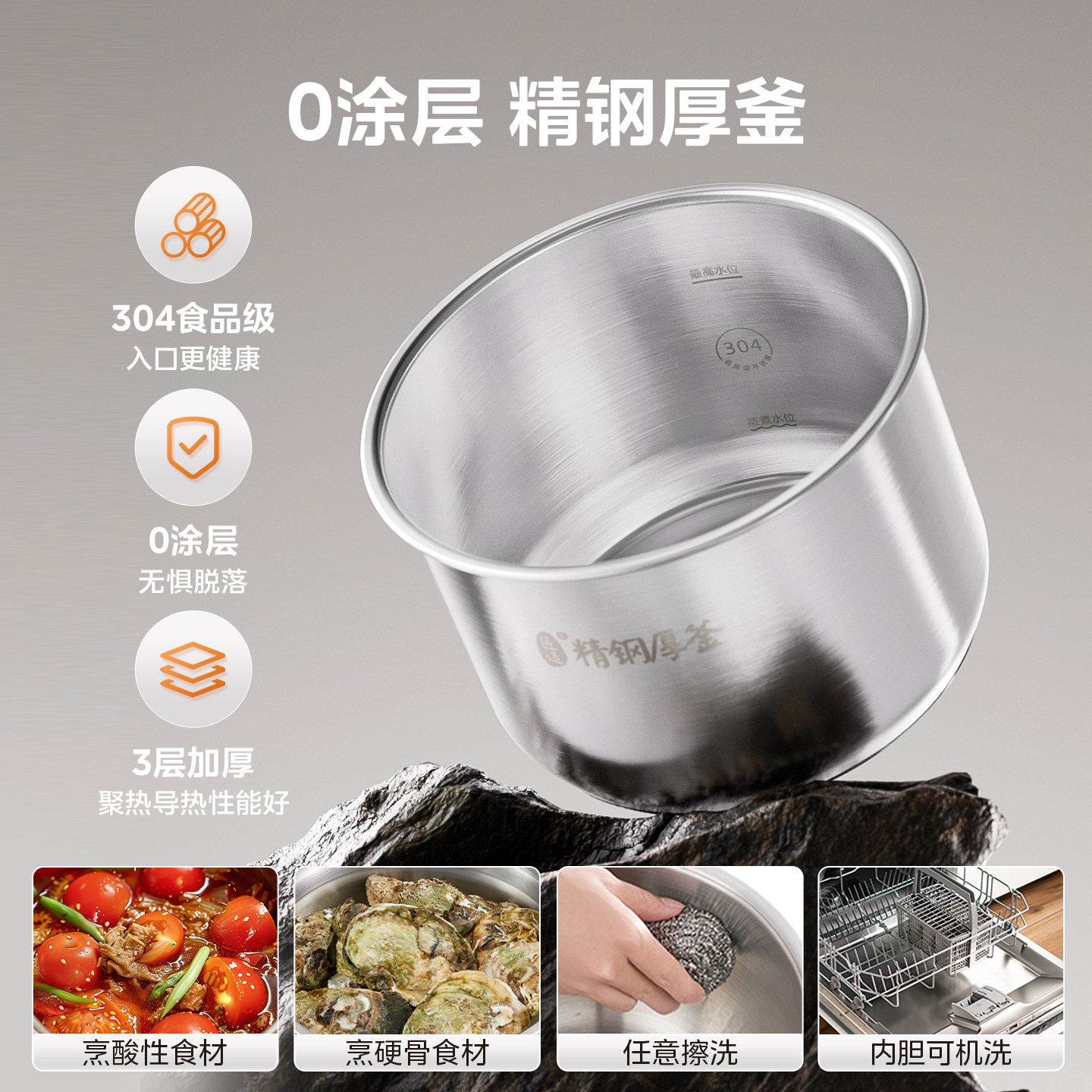 淘适用美的电压力锅内胆4L/5L/6L升316L不锈钢内胆通用原装配件正品