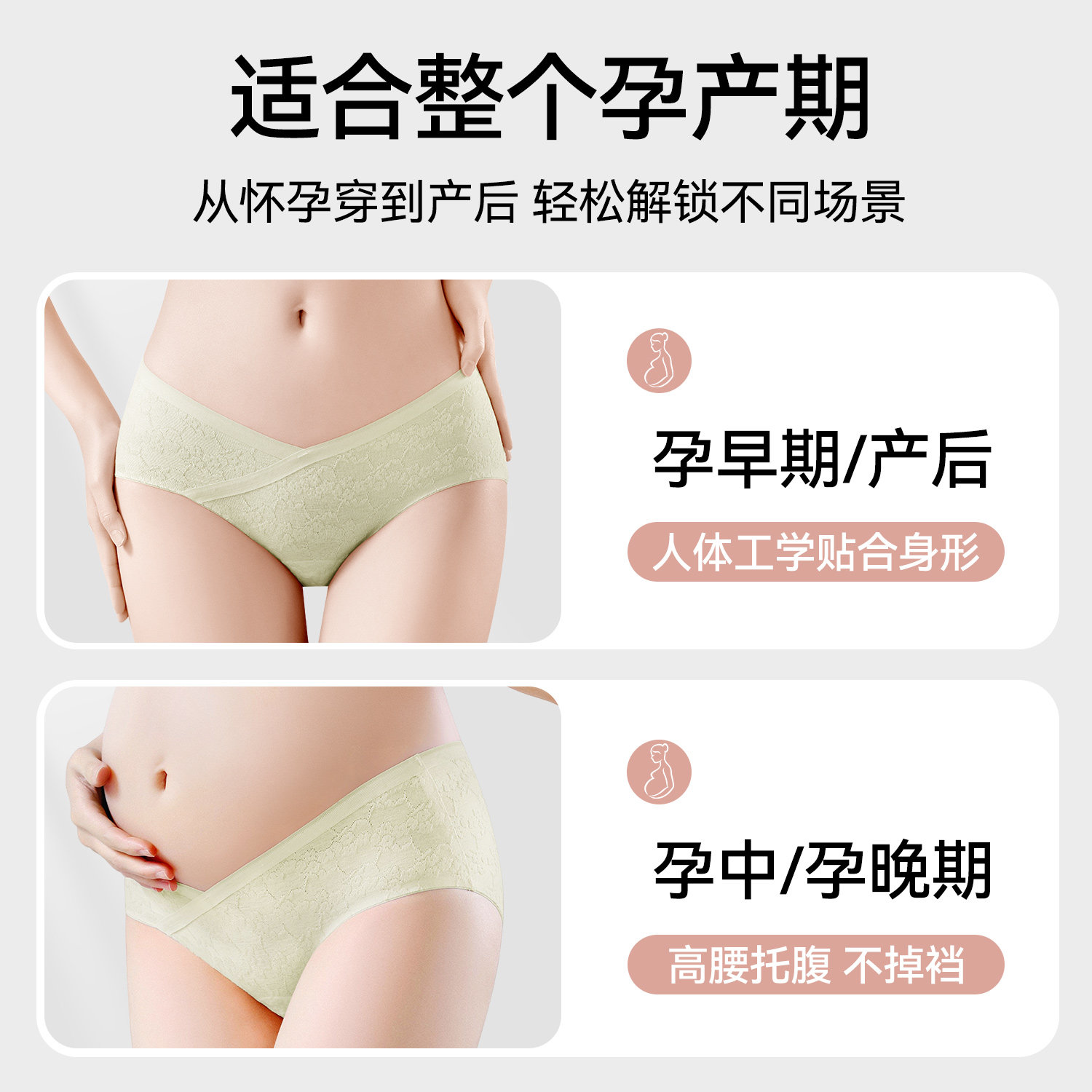 天全棉时代孕妇内裤纯棉低腰舒适透气全孕期托腹大码不勒肚内裤女