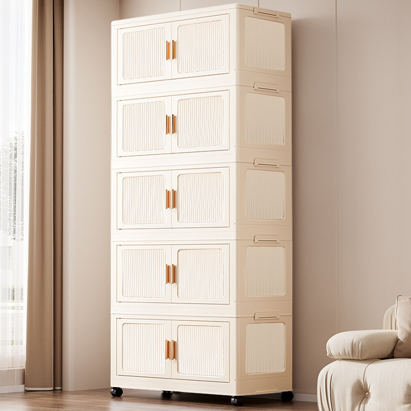 淘折叠衣服收纳柜靠墙储物柜塑料简易婴儿衣服多层置物架家用整理柜