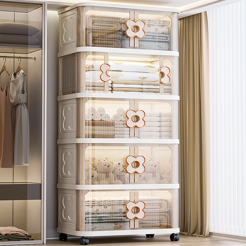 天折叠家用收纳柜子置物柜加厚客厅卧室储物柜带轮免安装塑料零食柜