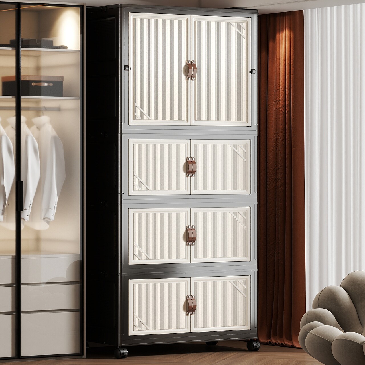 家用收纳柜儿童衣橱,专为现代家庭打造,采用简约设计理念。该衣橱是免安装的,结构简洁且容易组装,特别适合忙碌的现代家庭。采用多层设计,为您提供丰富的储存空间,让您轻松收纳各种物品。独特的折叠式构造使得其可以方便地进行折叠和展开,省去了安装与移动的烦恼。更重要的是,这款储物柜还考虑到了儿童的特殊需求,有适合儿童的收纳空间。外观美观大方,既能满足收纳需求,又能为客厅增添一份优雅的气息。无论是客厅还是卧室,这款收纳柜都是您家居生活的理想选择。