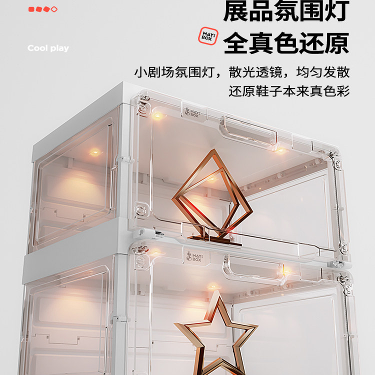 天猫蚂蚁盒子茶色透明可折叠智能声控鞋盒防尘鞋柜防氧化轻奢发光鞋架