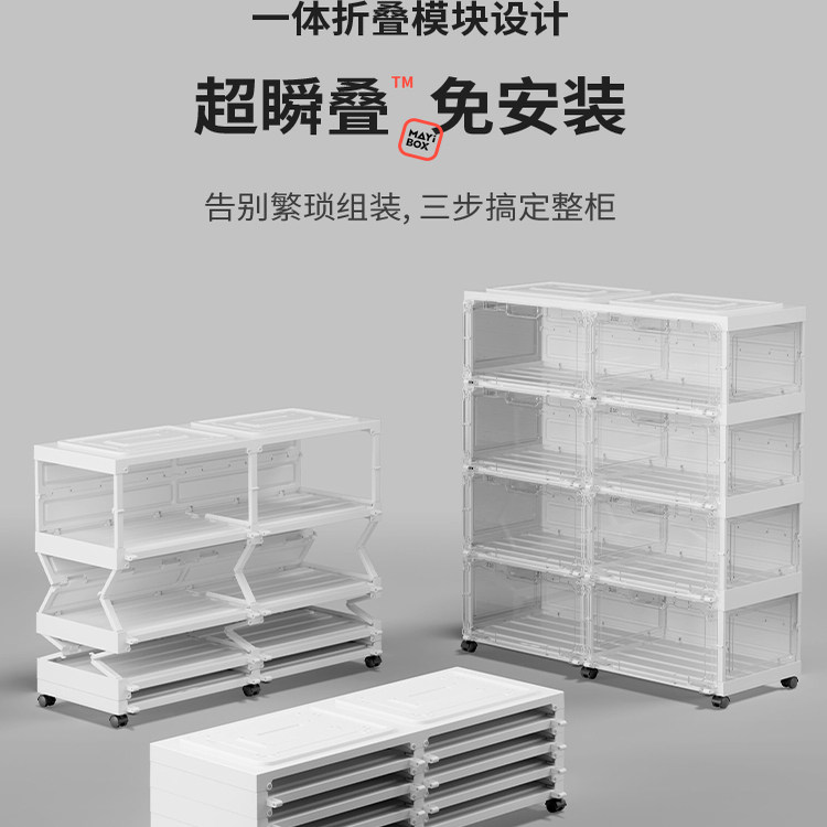淘免安装折叠收纳柜子客厅零食储物柜厨房夹缝置物架家用塑料收纳箱
