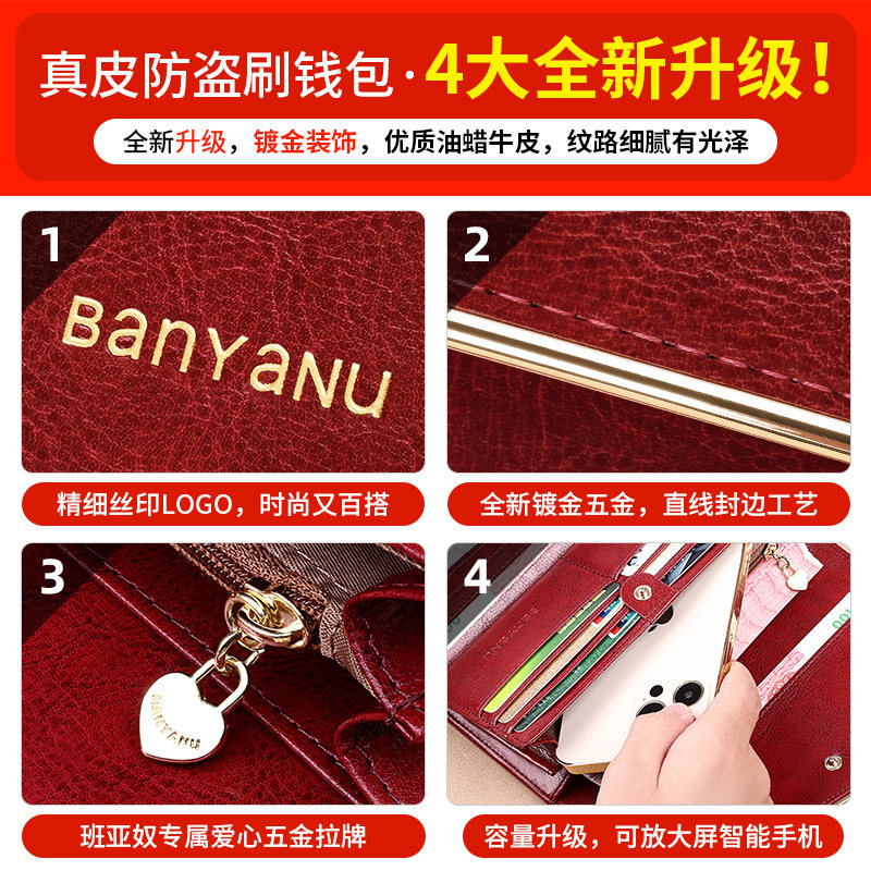 班亚奴女士钱包长款2025新款真皮手拿包大容量多卡位钱夹手机包包