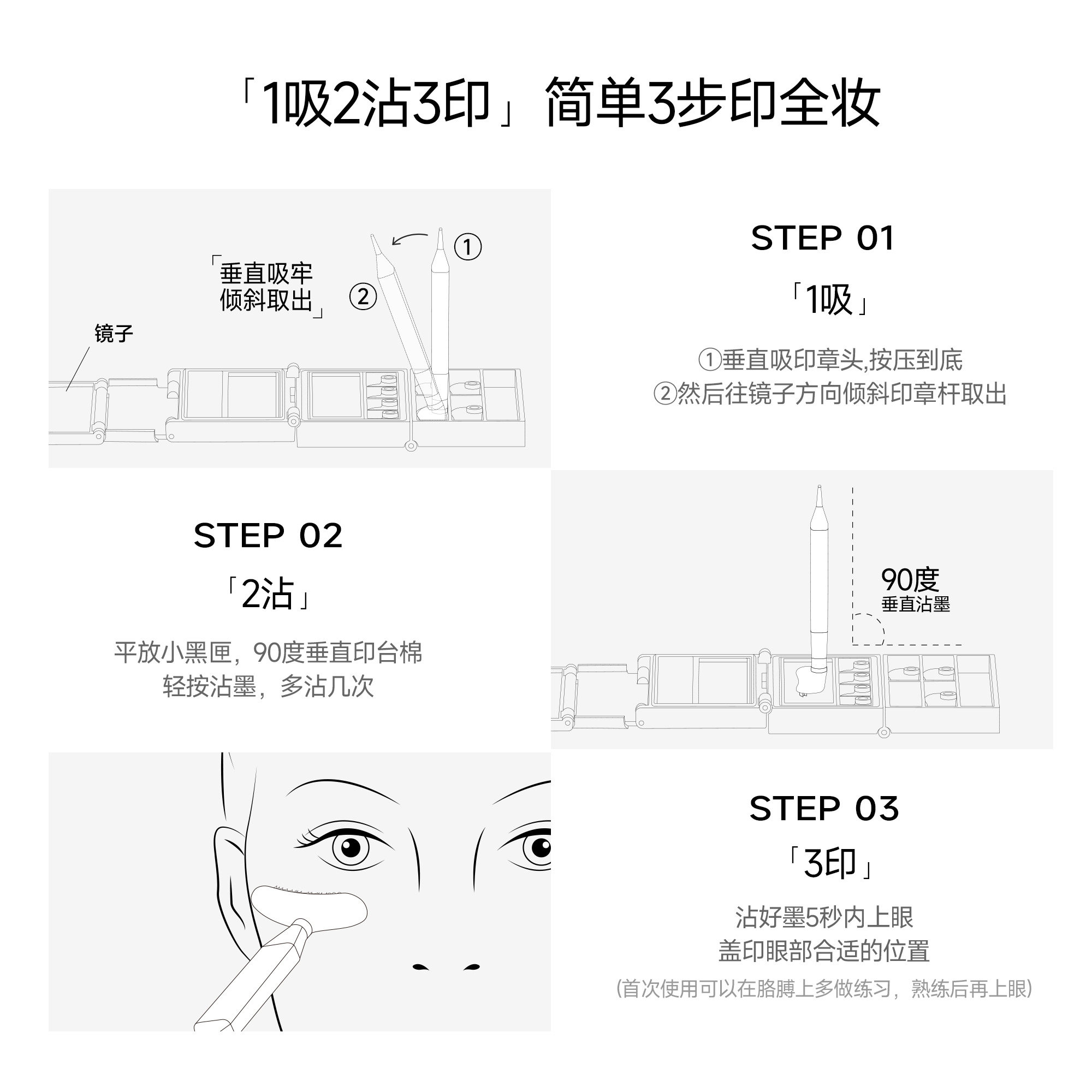 【吴一同学神器】小黑盒眼线印章下睫毛点痣笔三合一便携式一体式,集眼线、下睫毛、点痣三大功能于一体,轻松打造精致眼妆。创新印章设计,一按即出流畅眼线,新手也能快速上手;精细笔头可勾勒自然下睫毛,增强眼部立体感;点痣功能随心点缀,增添个性魅力。小巧便携,随身携带随时补妆,告别繁琐工具。防水防晕配方,持久不脱妆,适合日常通勤或约会派对。一体式设计节省空间,是美妆达人与学生党的必备神器,让化妆更简单、更高效,轻松拥有迷人电眼。
