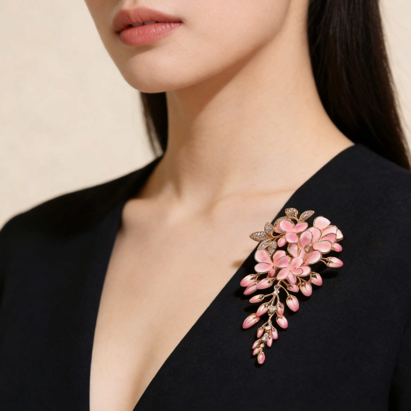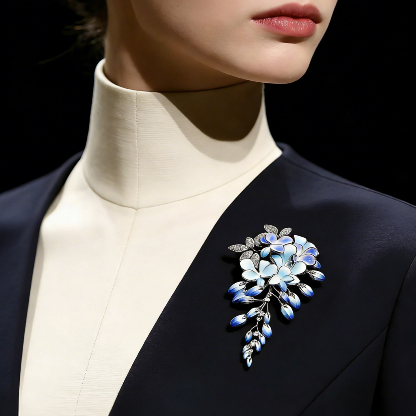 淘宝原创设计紫藤花朵胸针高定轻奢高级感时尚婚礼法国胸花珐琅彩礼物