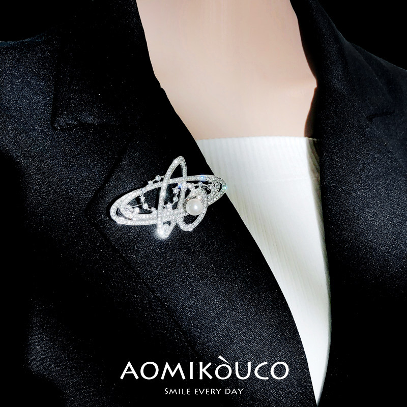 淘宝新款西太后镂空镶钻土星胸针高档气质星球元素珍珠别针百搭配饰品