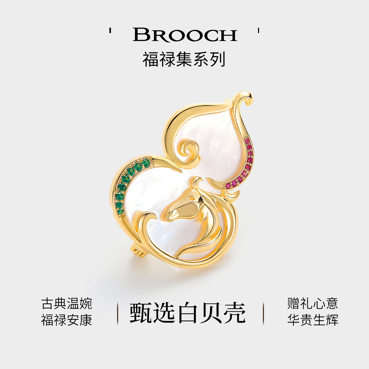 天猫JAY福禄葫芦生肖小马胸针配大衣白贝别针新年配饰马年本命年礼物