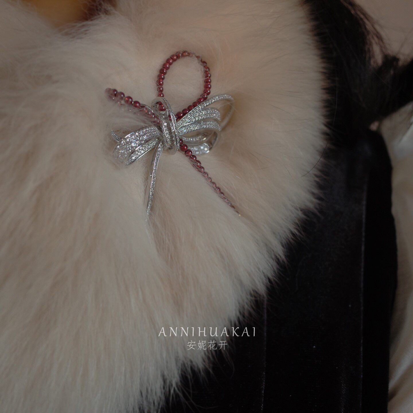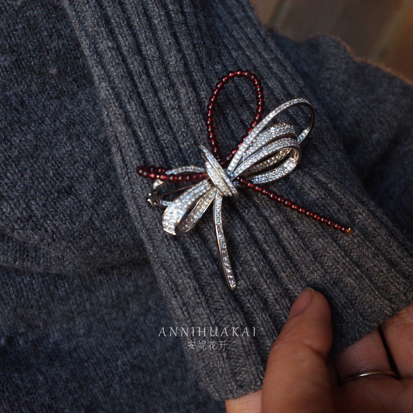 淘宝【香奢】重工高端大气优雅蝴蝶结石榴石胸针女百搭设计感新款配饰