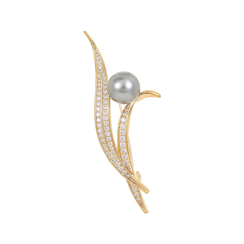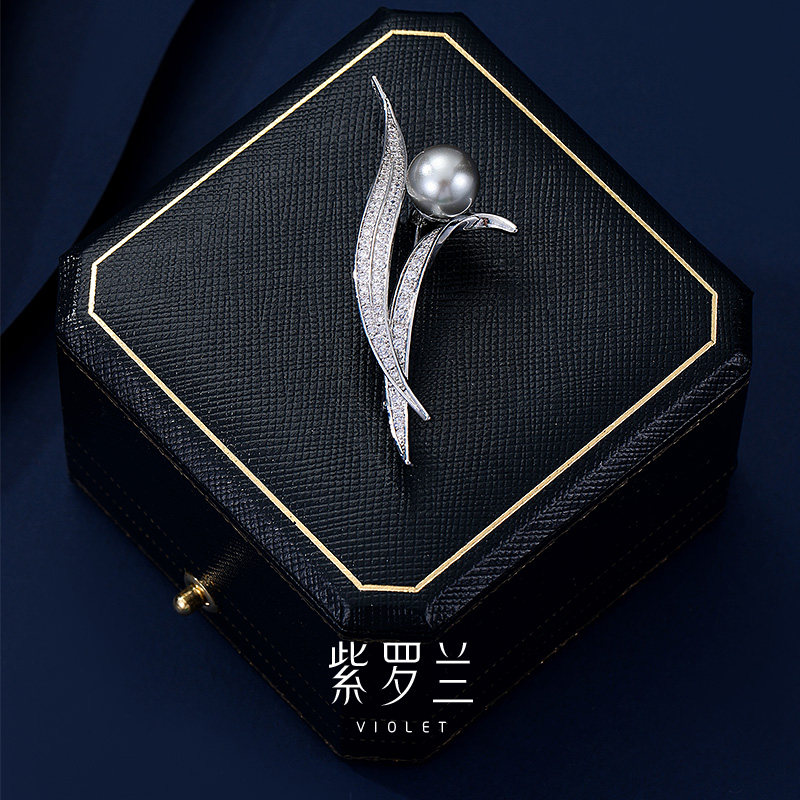 天猫【紫罗兰正版】题叶珍珠胸针高档女精致叶子胸花别针生日礼物