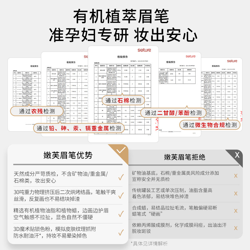 德国嫩芙准孕妇眉笔专为孕期及哺乳期女性设计,采用天然有机成分,温和无刺激,通过多项安全认证,安心使用。眉笔结合眉粉双效设计,轻松打造根根分明的野生眉效果,自然立体不结块。防水耐汗配方,持久不脱色,即便在炎热天气或运动后仍能保持精致眉形。笔芯细腻顺滑,易上色且易于晕染,新手也能轻松驾驭。小巧便携,附带螺旋刷,梳理眉毛更服帖。无论是日常通勤还是重要场合,都能呈现自然清新的眉妆,为准妈妈增添自信光彩,是孕期彩妆的理想之选。