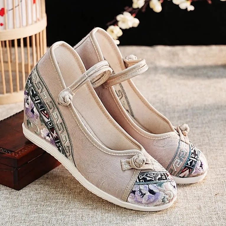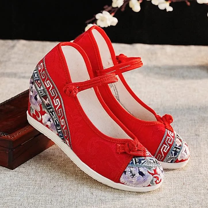 淘宝新款春夏老北京布鞋内增高古风配汉服鞋民族风绣花鞋高跟舞蹈女鞋