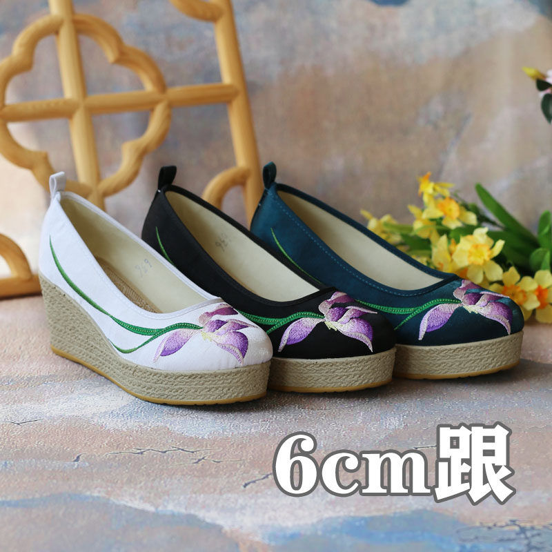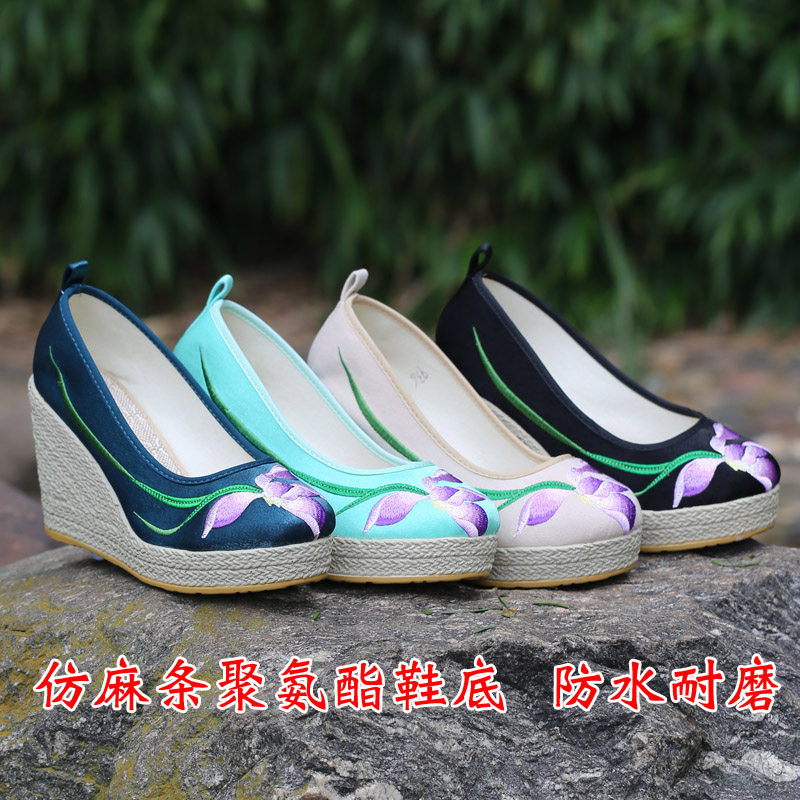 淘宝坡跟布鞋古风绣花鞋厚底国风鞋子中式汉服高跟鞋民族风女鞋超高跟